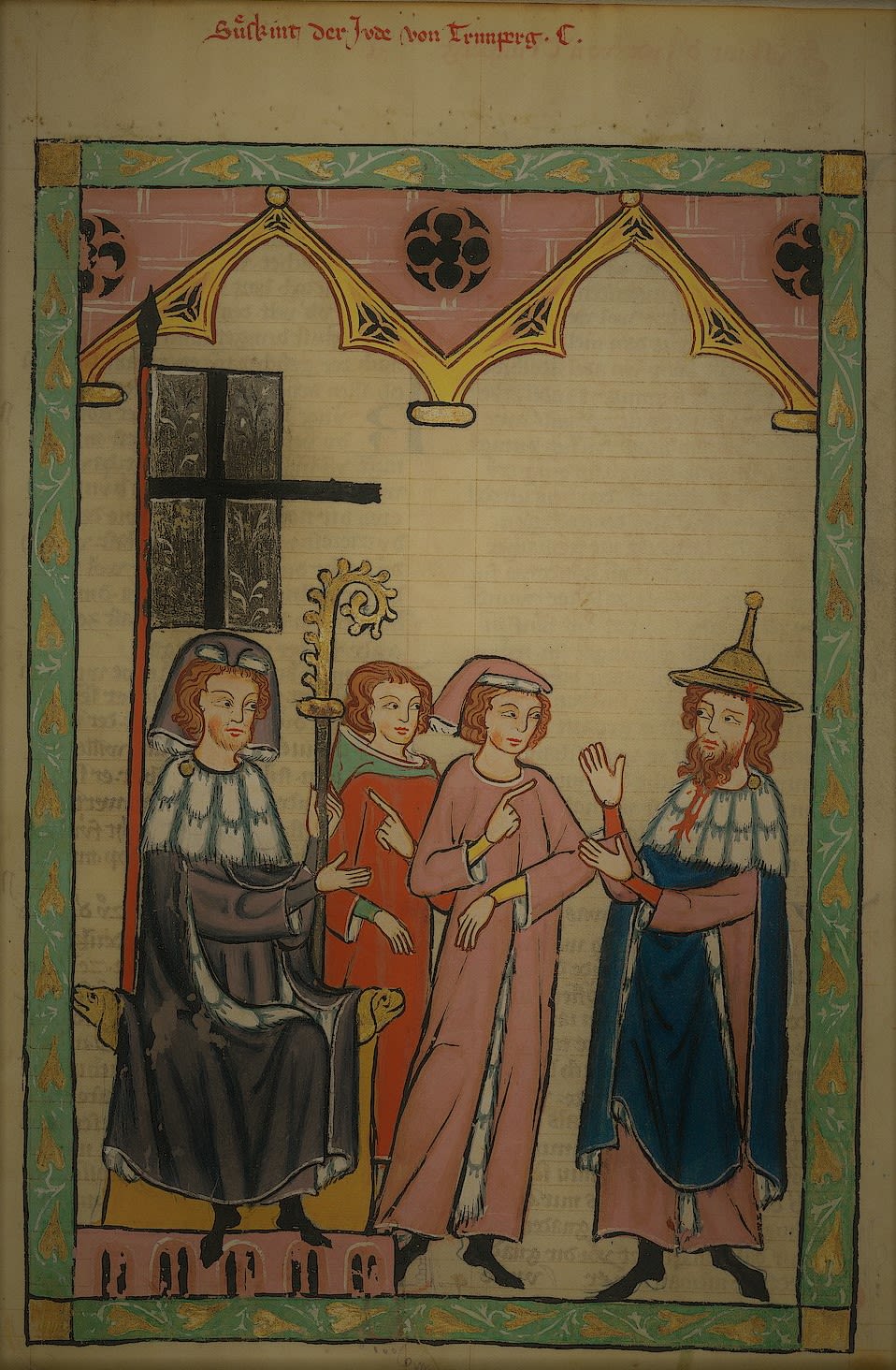Der jüdische Dichter Trimberg, deutlich durch seine Kleidung erkennbar.