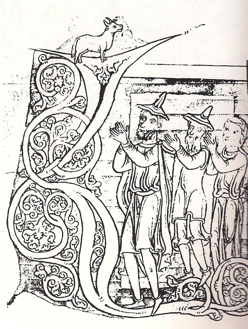 Hier dargestellt sind Juden mit den typischen Spitzhüten. (Abb. in Blumenkranz, 35)