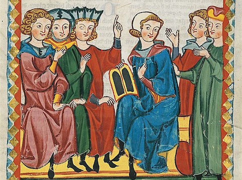Gottfried von Straßburg im Codex Manesse: https://commons.wikimedia.org/wiki/File:Codex_Manesse_Gottfried_von_Stra%C3%9Fburg.jpg, Datum des Zugriffs: 10.12.2023.