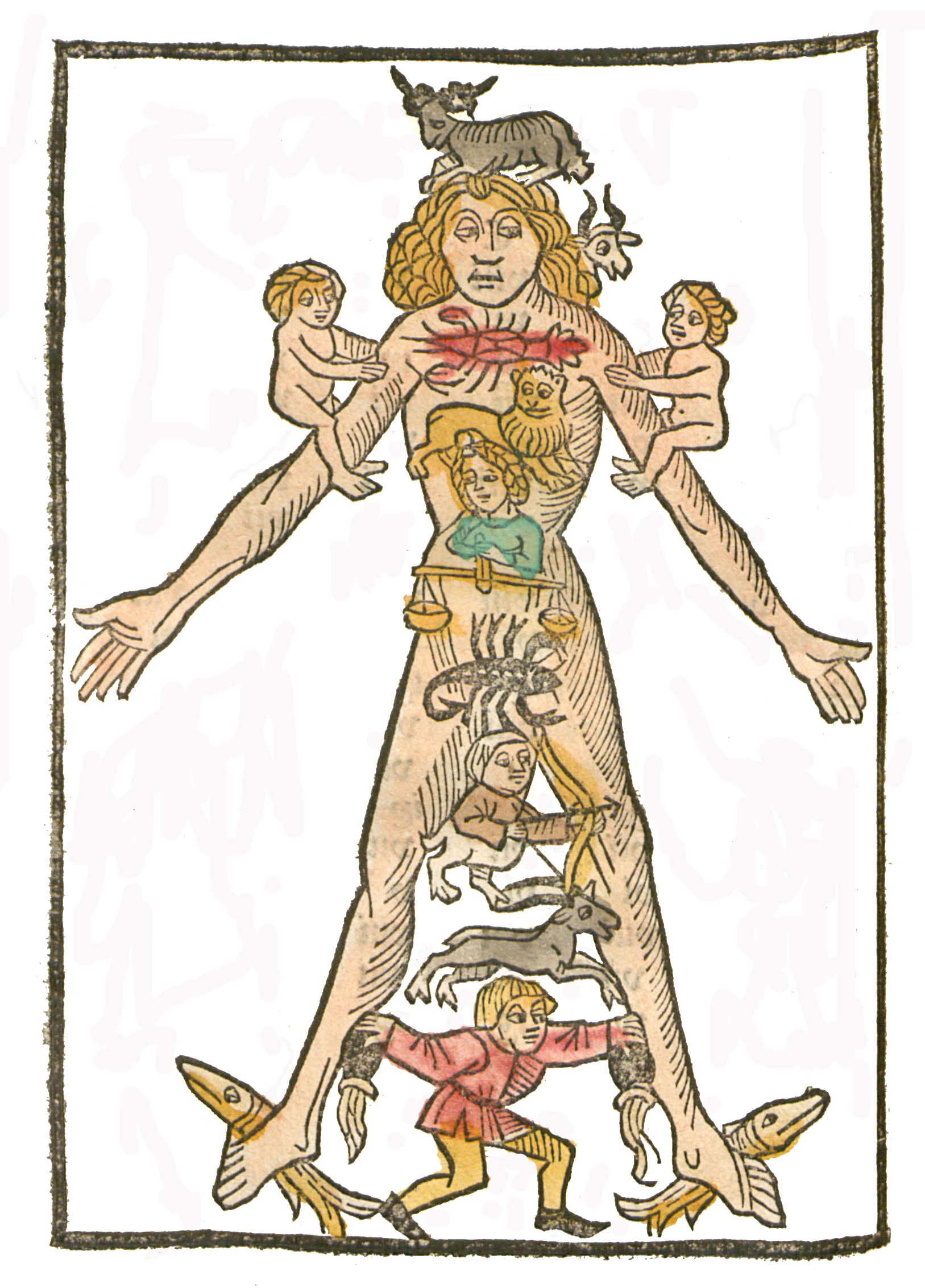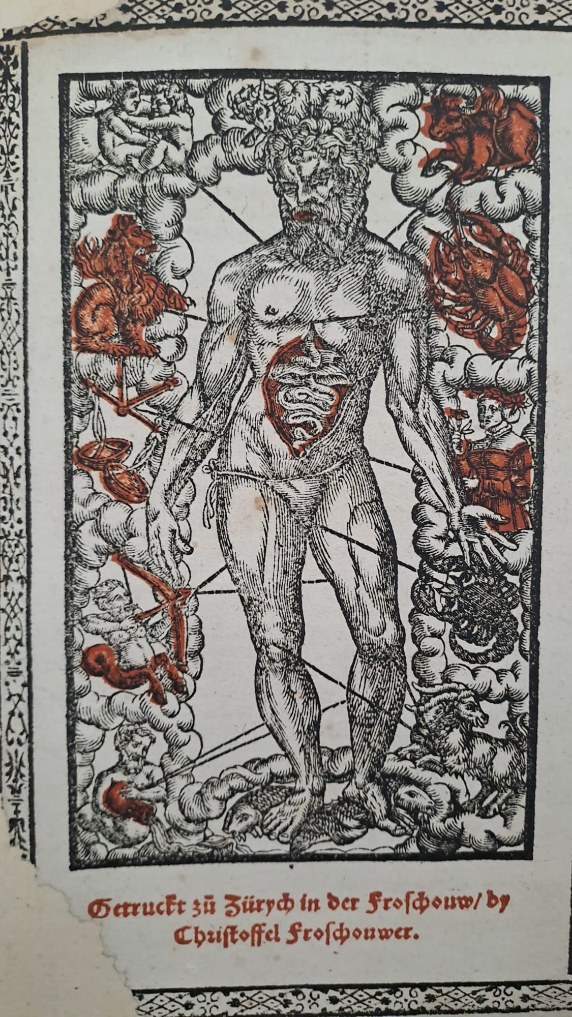 Aderlassmännchen aus einem Wandkalender von 1555 aus Zürich