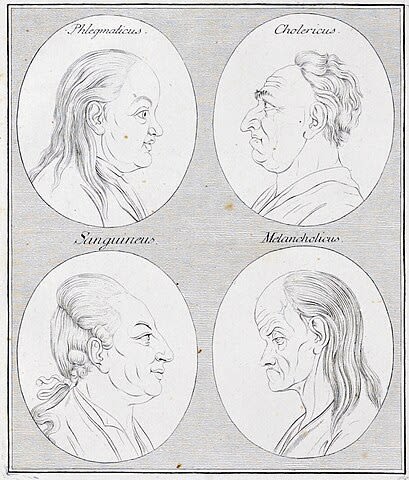 Daraus entwickelte sich die Temperamentenlehre (Humoralcharakterologie), denn auch die Charaktermerkmale eines Menschen hängen von der Mischung seiner Körpersäfte ab. Es gibt vier Grundtypen.