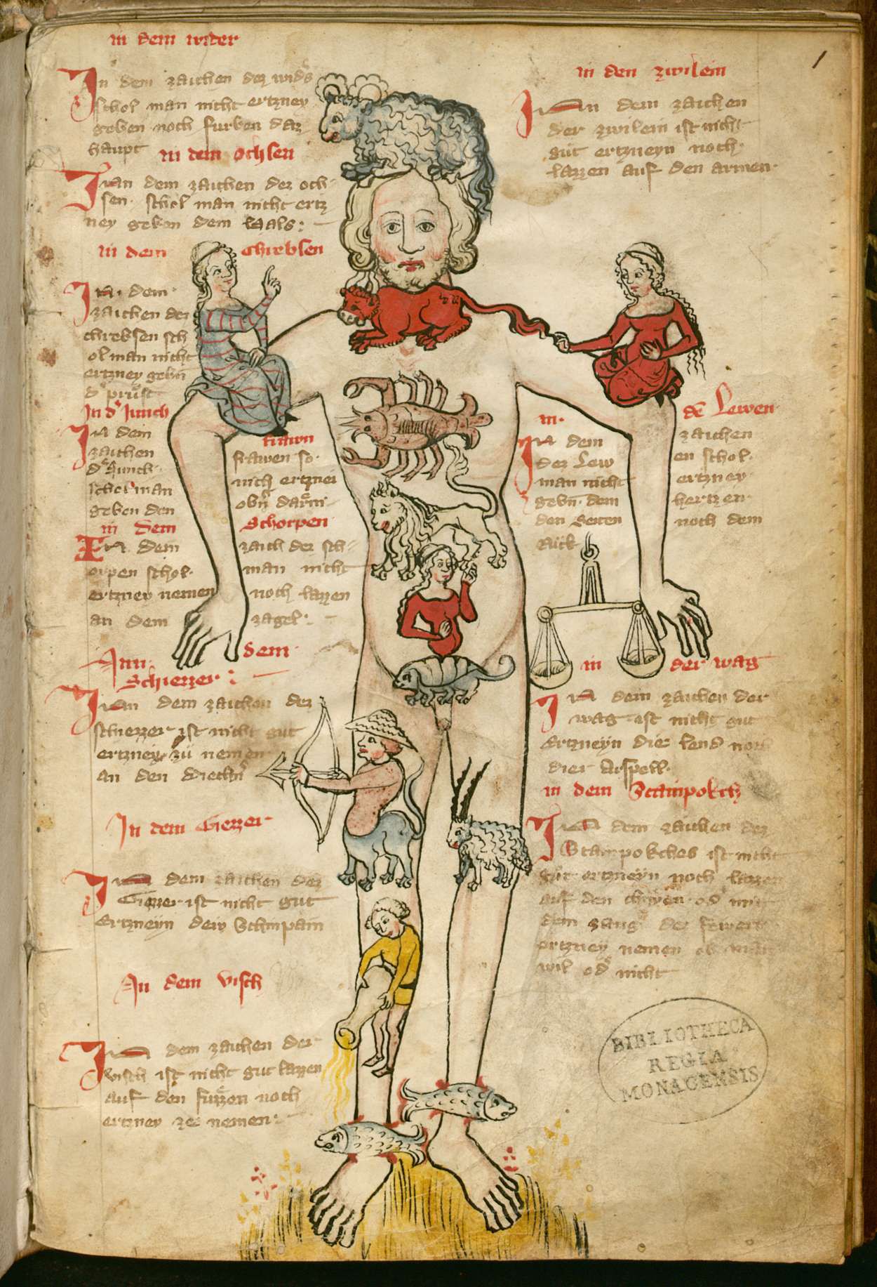 Aderlassmännchen aus einem iatomathematischen Hausbuch von 1498 aus Ulm