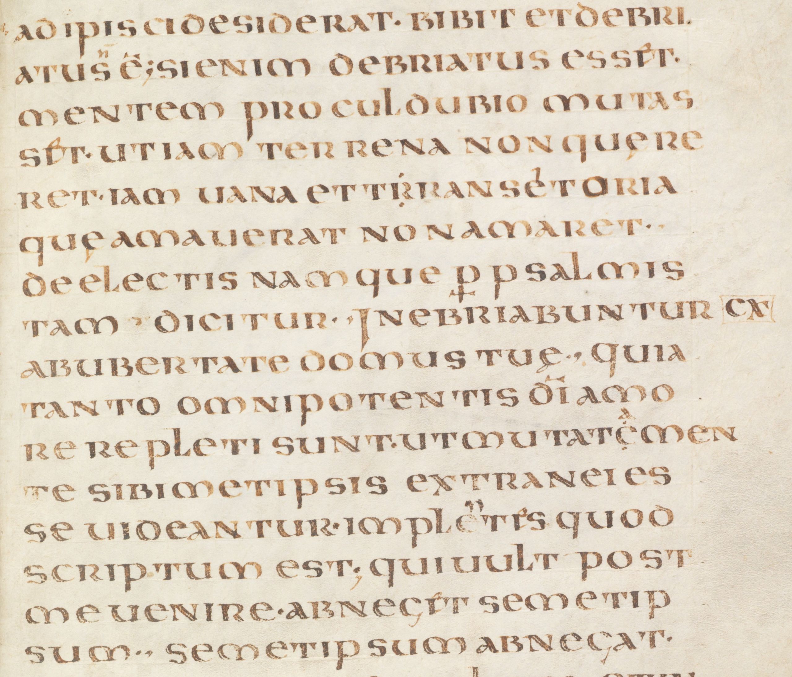 Ein eher seltenes Beispiel für eine Unziale, die noch als normale Schreibschrift verwendet wurde. Einsiedeln, Stiftsbibliothek, Codex 157(372), p. 214. https://www.e-codices.unifr.ch/en/list/one/sbe/0157