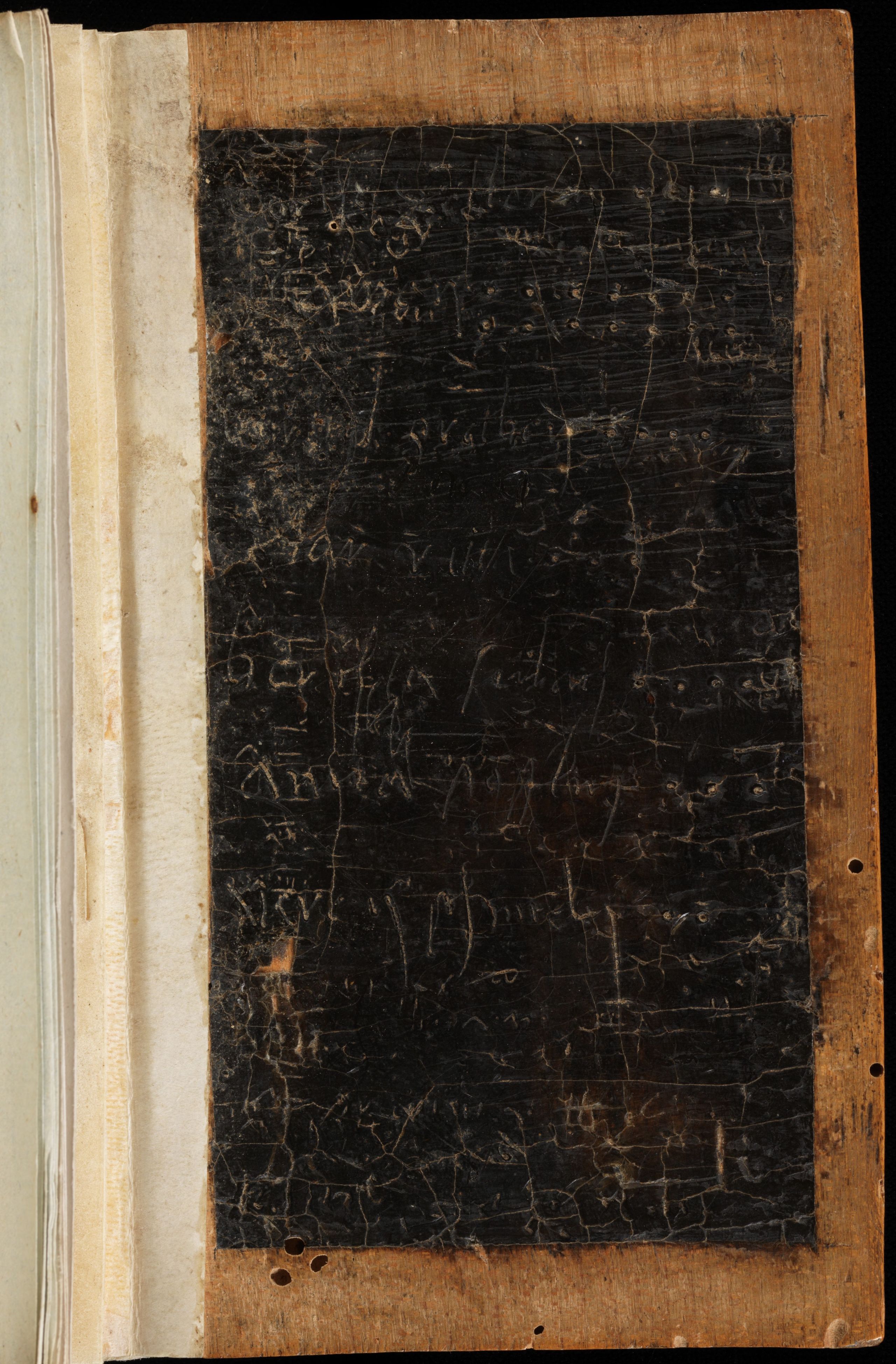 Eine Wachstafel mit schwarz gefärbtem Wachs aus dem 15. Jahrhundert. St. Gallen, Stiftsbibliothek, Cod. Sang. 1091, p. 5. https://www.e-codices.unifr.ch/en/list/one/csg/1091
