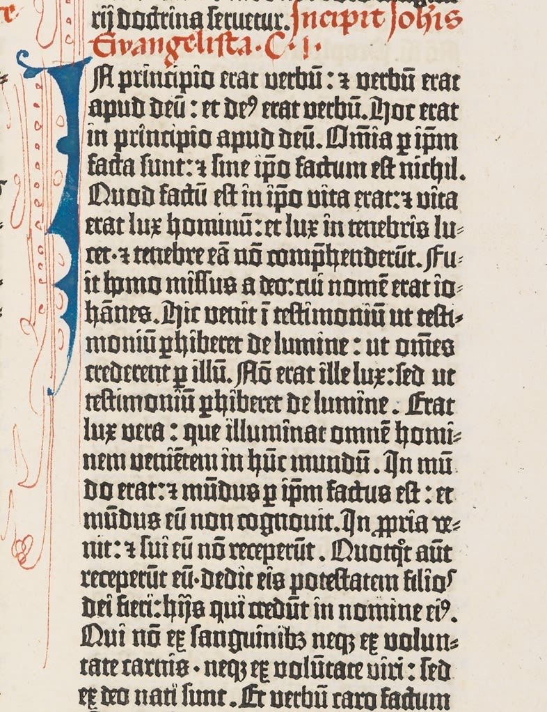 Der Anfang des Johannesevangeliums in einer Gutenbergbibel. München, Bayerische Staatsbibliothek, 2° Inc.s.a. 197, f. 235r. http://daten.digitale-sammlungen.de/bsb00004648/image_1