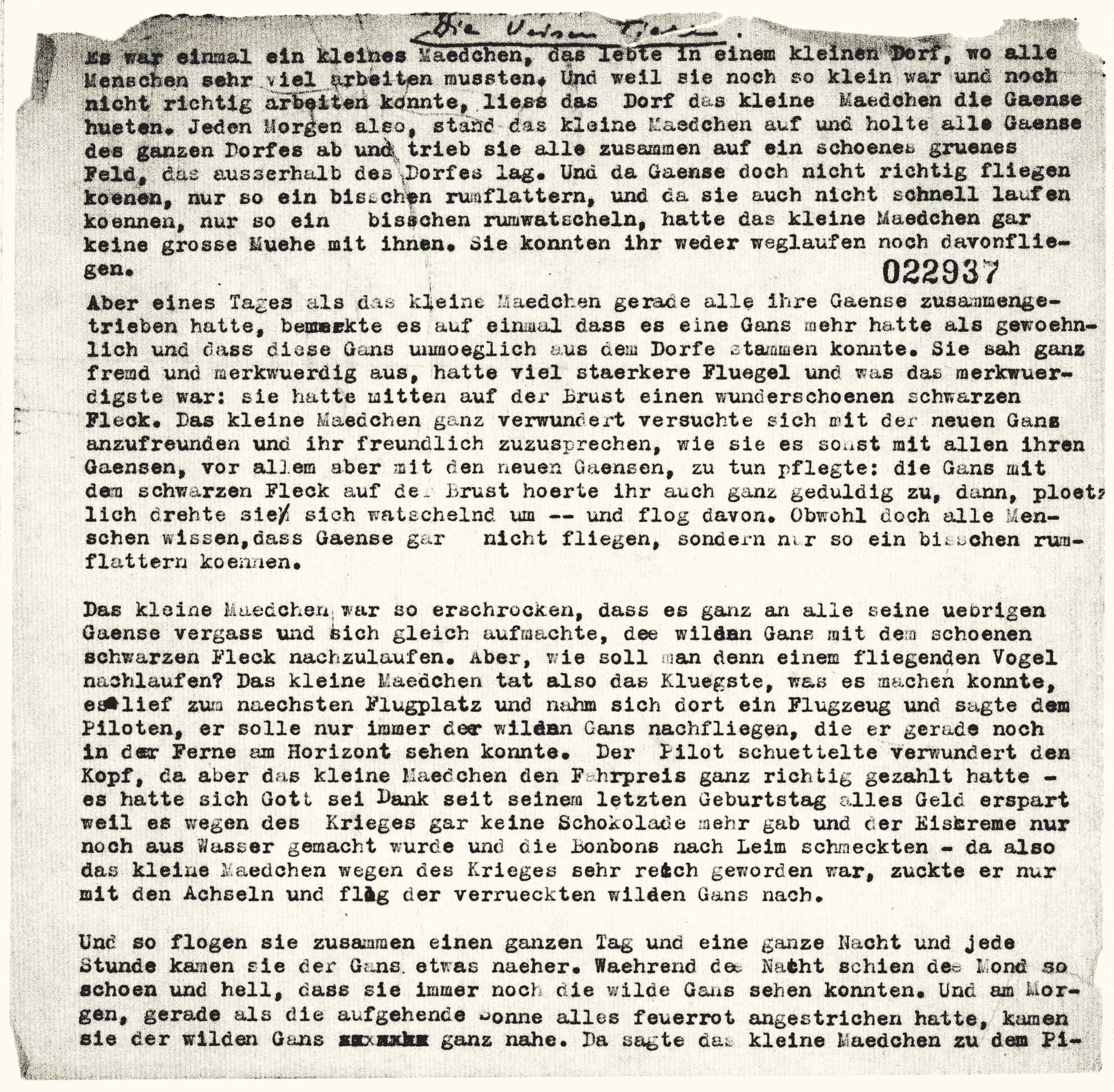 Aus dem Nachwort von Hildegard E. Keller. Die Originalseiten: The Hannah Arendt Papers at the Library of Congress. Poetry and Stories, LoC, Box 85, hier die Seiten fol. 022937 und 022943.