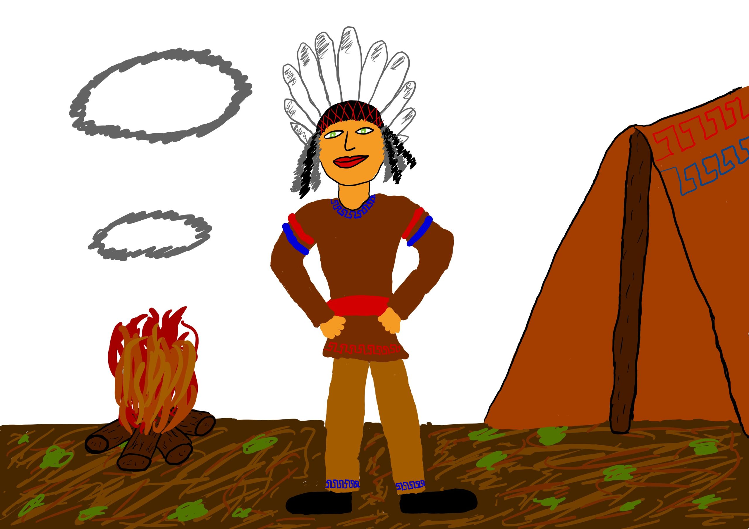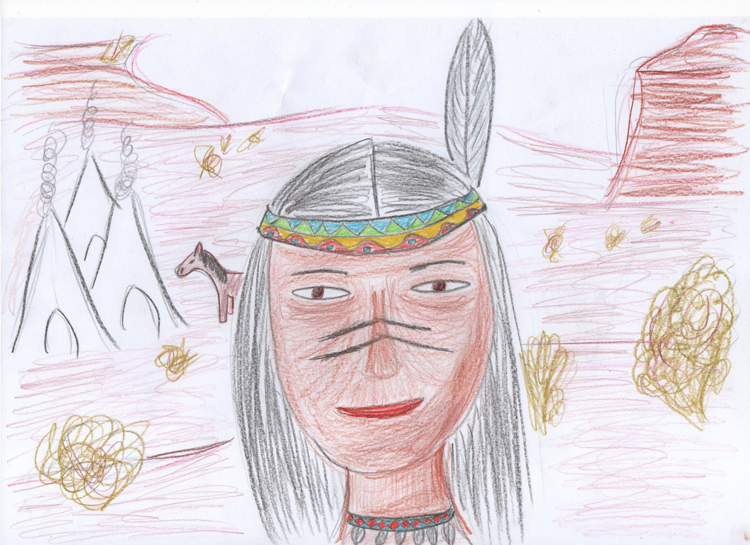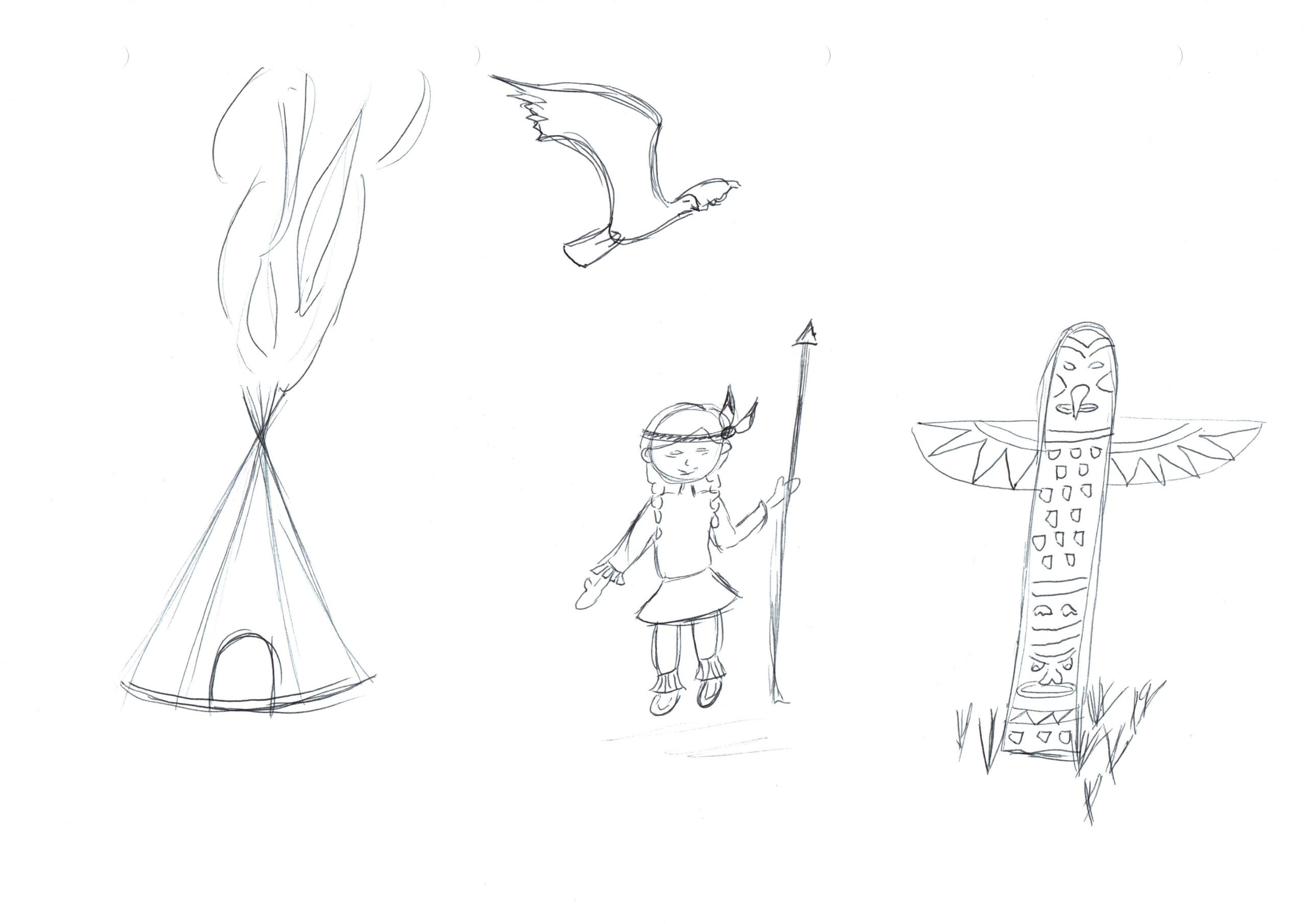 Die eingereichten Skizzen lassen eine grobe Einteilung in drei Indianer-Stereotypen zu. Diesbezüglich habe ich die gezeichneten Indianer mit den Ausdrücken «Der Häuptling», «Der Krieger» und «Die Frau mit Zöpfen» versehen. In meiner Testgruppe kamen diese Typen zu etwa gleichen Teilen vor.