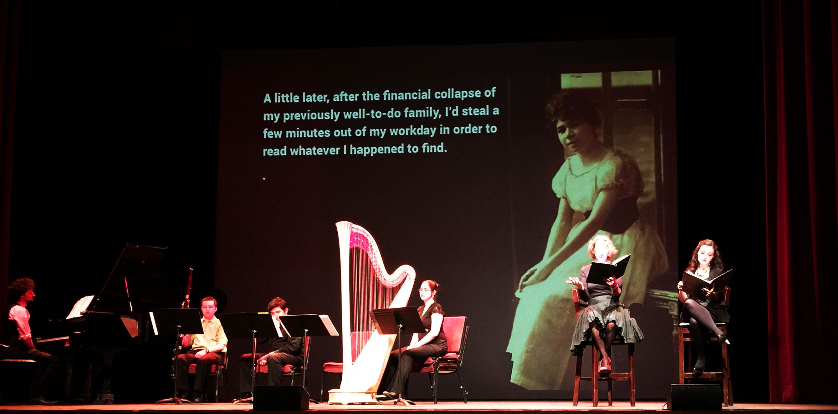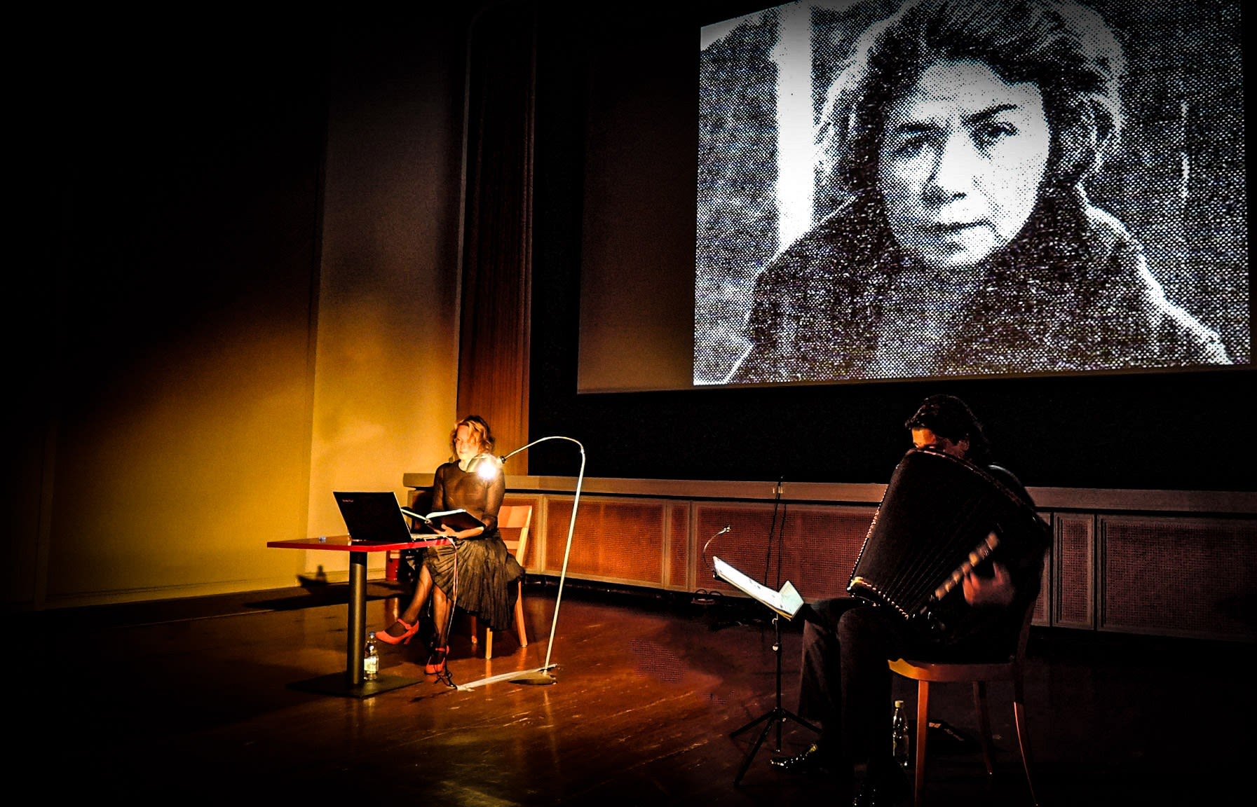 Performance is one of my favorite ways to tell Alfonsina's story. Words, music, voice, movement, stage images, and audience members all suit her. She loved and lived for theater.