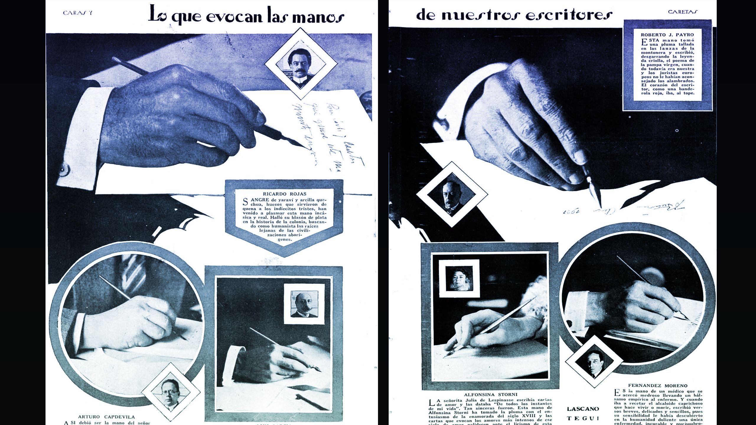 It seems almost paradoxical that Storni became a star in the press. I found numerous articles and interviews with her in newspapers and magazines, many of them about her poetry – even though she repeatedly tried and failed to steer the conversation towards theater. Some journalists asked seasonal questions, such as “How do you celebrate Christmas?” In a carnival edition, she was asked: “Would you rather be a man?” In summer it was: “Where do you go on holiday?” In politically turbulent times: “Which politician would you like to marry?”. Even astrologers, graphologists and palm readers were consulted in an attempt to understand the poet's soul.