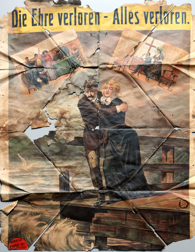 Fotografische Plakate waren darum bemüht, die Hauptdarsteller*innen des Werks und einzelne Szenen zu bewerben, was heutzutage in den Aufgabenbereich eines Filmtrailers fällt. Handgemalte Bildplakate sollten die Atmosphäre, das Pathos eines Films hervorheben – hierdurch lässt sich auch die einzigartige historische Position solch früher Filmplakate nachvollziehen: Der frühe Film wurde zum Konkurrenten etablierter Medien wie dem Theater, der Literatur und nicht zuletzt der Malerei. Um publikumsfähig zu werden, galt es, die «alten» Medien miteinzubeziehen, sie zu referenzieren.