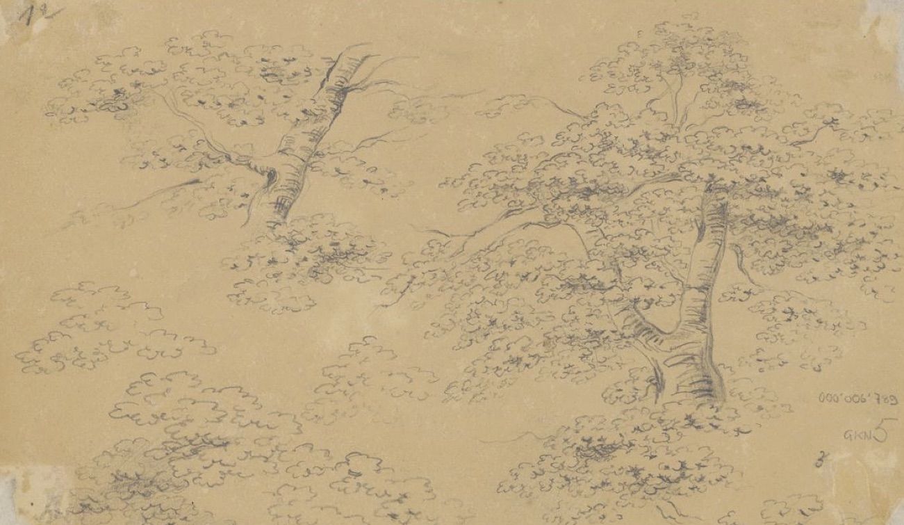 Obwohl Gottfried Keller nicht nur Landschaften gemalt hat, scheinen es ihm die Bäume besonders angetan zu haben. Viele seiner Skizzen und Gemälde zeigen Bäume, Wälder und Wurzeln.