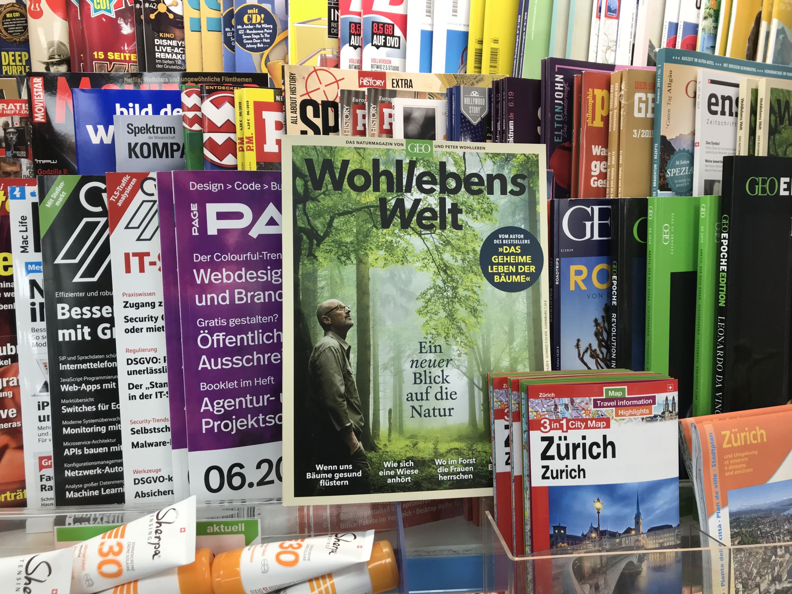 Doch Wohlleben ist nicht der einzige Autor, der mit Waldbüchern zurzeit erfolgreich ist. Betritt man eine Buchhandlung, trifft man mit Sicherheit auf ein schön dekoriertes Display mit grünem Farbschema. Waldbücher soweit das Auge reicht. Das reichbestückte Sortiment sagt viel über die Kunden aus. Dabei kann man es bizarr finden, dass diese Bücher aus Papier sind. Wo doch Papier hauptsächlich aus pflanzlichen Fasern besteht, die aus dem Rohstoff Holz gewonnen werden. Der Kreislauf schliesst sich also gewissermassen.