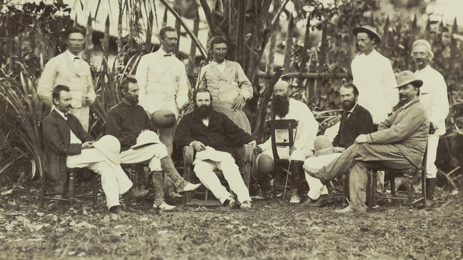 Ganz rechts steht Carl Fürchtegott Grob auf einer seiner Tabakplantagen in Patumbak.