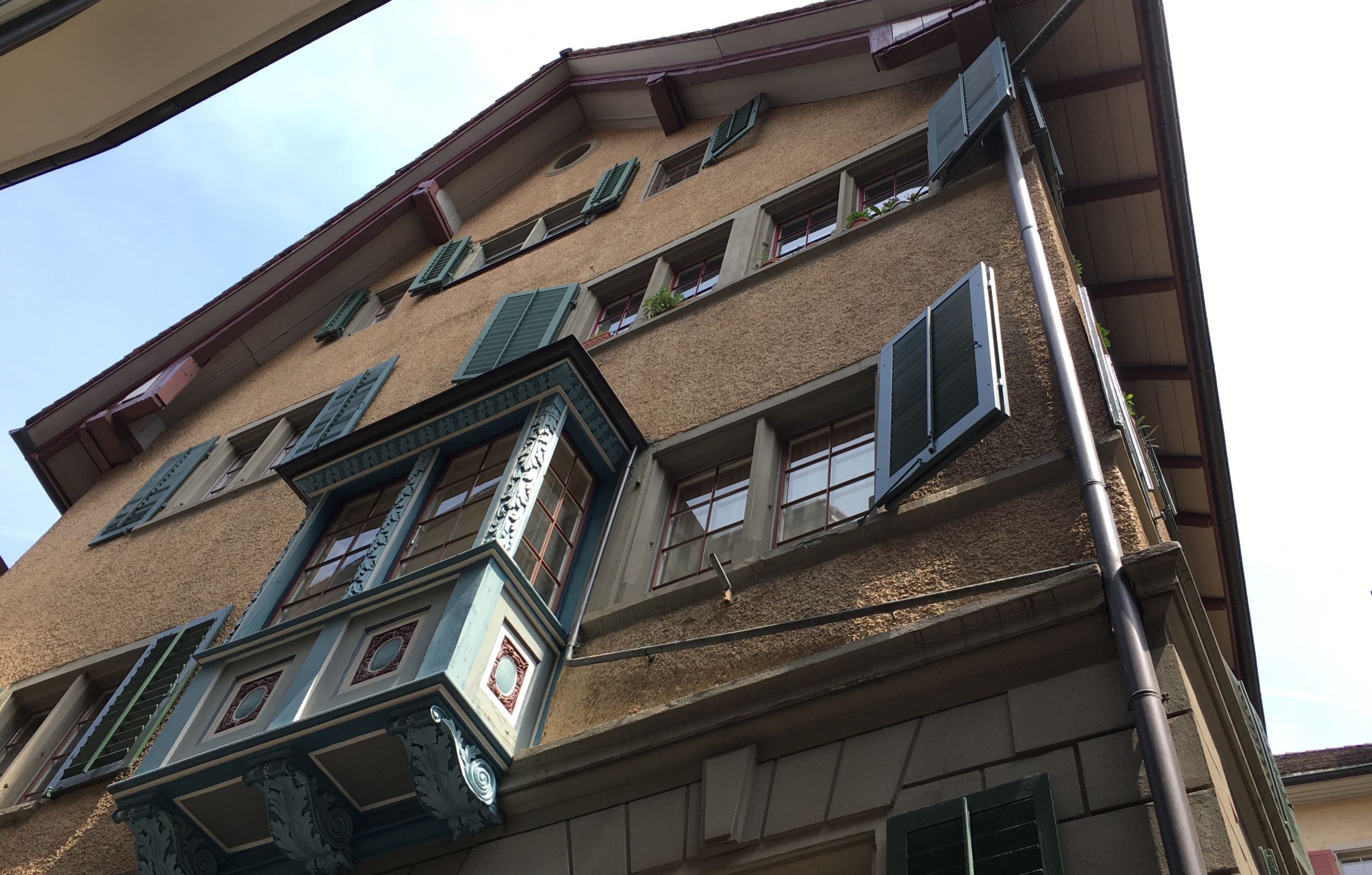 Hinter diesen Fenstern hat Rabbi Moses damals unterrichtet. Das Haus liegt mitten in der Altstadt. Die Brunngasse ist nur ein paar Schritte entfernt. Ich versuche mir vorzustellen, wie hier früher jüdische Kinder von Haus zu Haus gerannt sind.