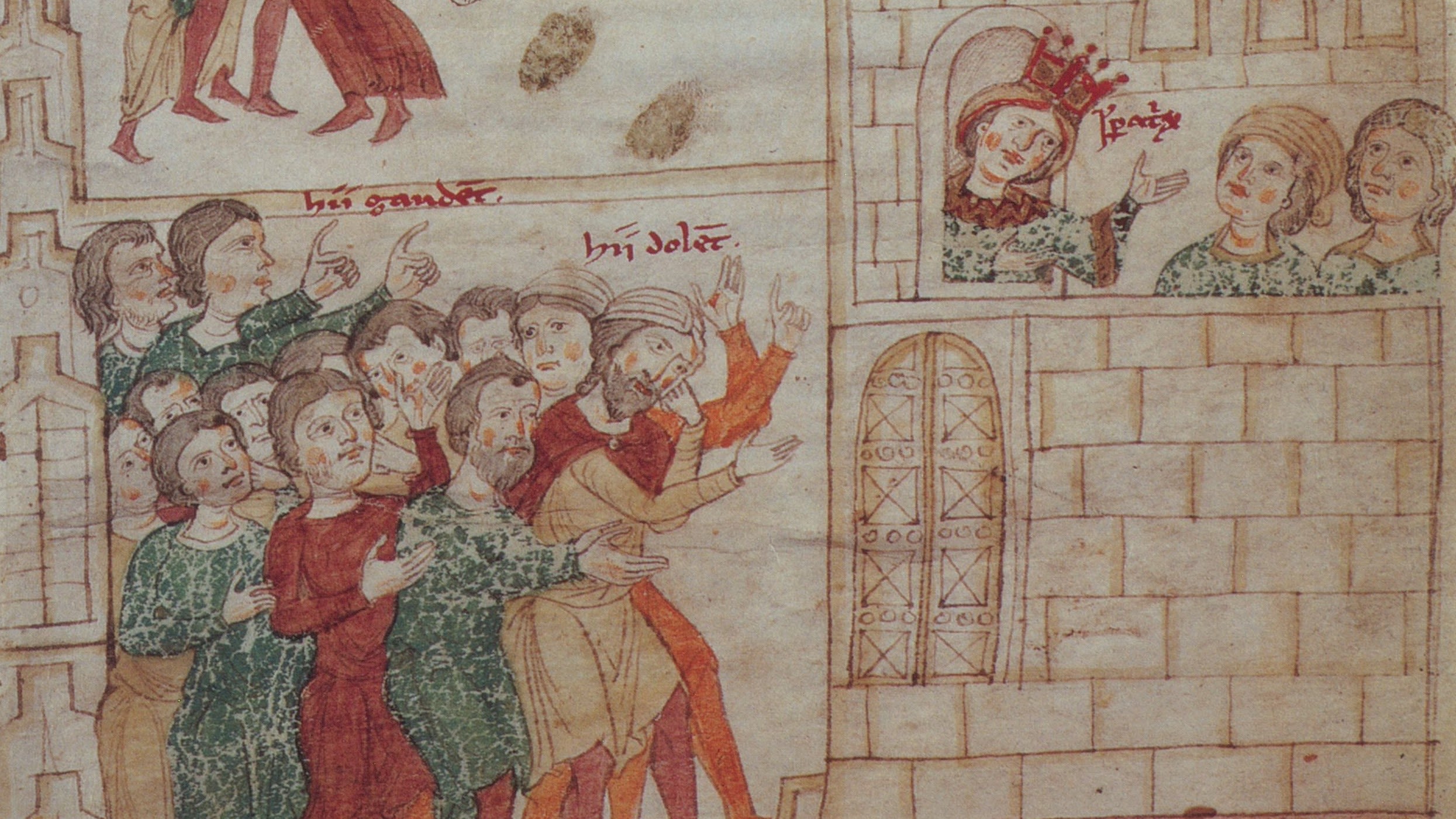 In diesem Ausschnitt (fol. IXc-Xc) fordert Christus streng asketische Lebensweise und will der Seele die weltliche Kleidung wegnehmen. Noch wehrt sich diese vehement.